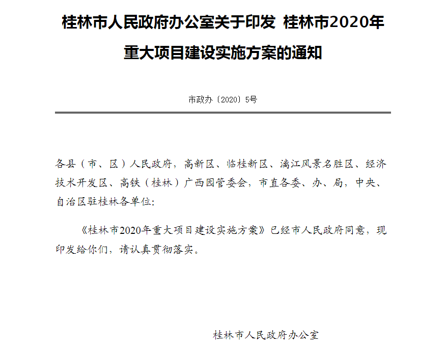 ▲桂林市2020年重大项目建设实施计划通知截图