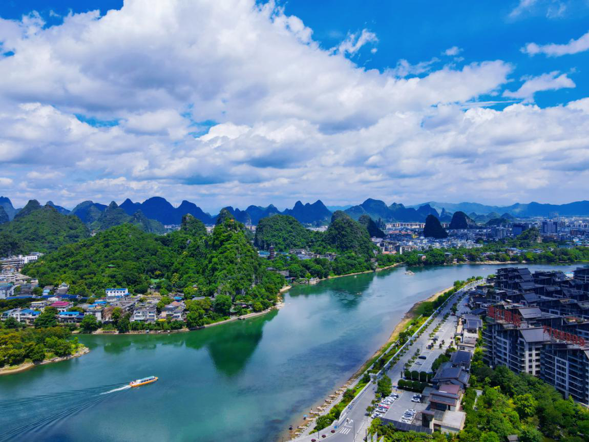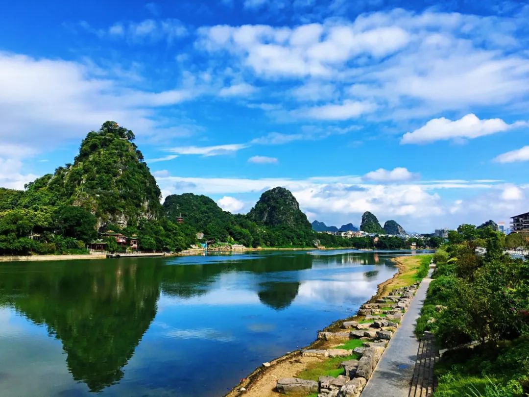 靖江王府贵脉之上,漓江与小东江汇合之处,玉带围绕,青绿潜在,让人不经感伤,《千里江山图》不但仅在画中,也在漓江最美1公里之上。