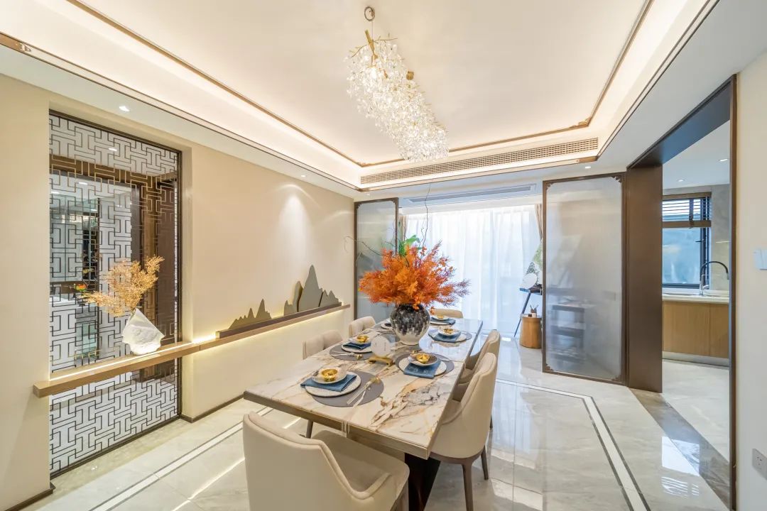 餐客厅与阳台融汇相通,是会客的气派门面,更是一家人的欢喜场域
