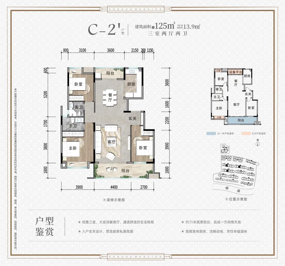 约5.5-9米阔景阳台,大户型三阳台设计,南北通透,让榕湖美景与美学园林尽收眼底
